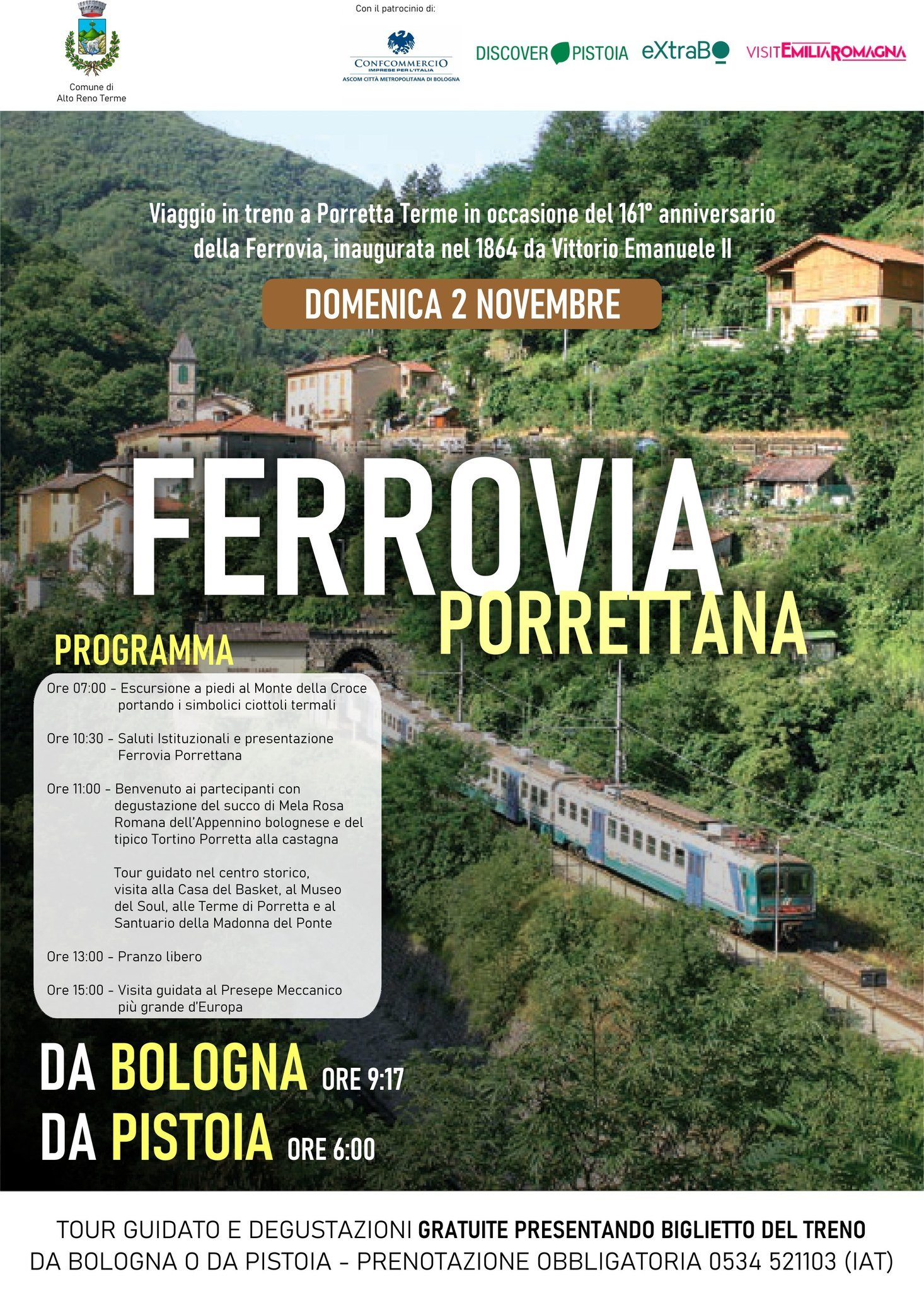Viaggio in treno a Porretta Terme in occasione del 161° anniversario della Ferrovia, inaugurata nel 1864 da Vittorio Emanuele II