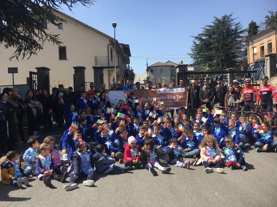 Il Sindaco Francesco Fazio ha quindi presentato un ricchissimo banchetto nel quale sono state messe in risalto le specialità locali, in linea con l’iniziativa del MIBACT “2018 Anno del Cibo italiano”, nato per esaltare le peculiarità enogastronomiche italiane, strumento di scoperta di una Italia minore ricca di tradizioni. Tra le specialità presentate: pizzata di granturco, trippa, funghi e nduja. Poi Fernando Raffaele, vigile della polizia locale, ha omaggiato Omar e Appennino Bike Tour con una bottiglia da 15 litri di vino artigianale di sua produzione.